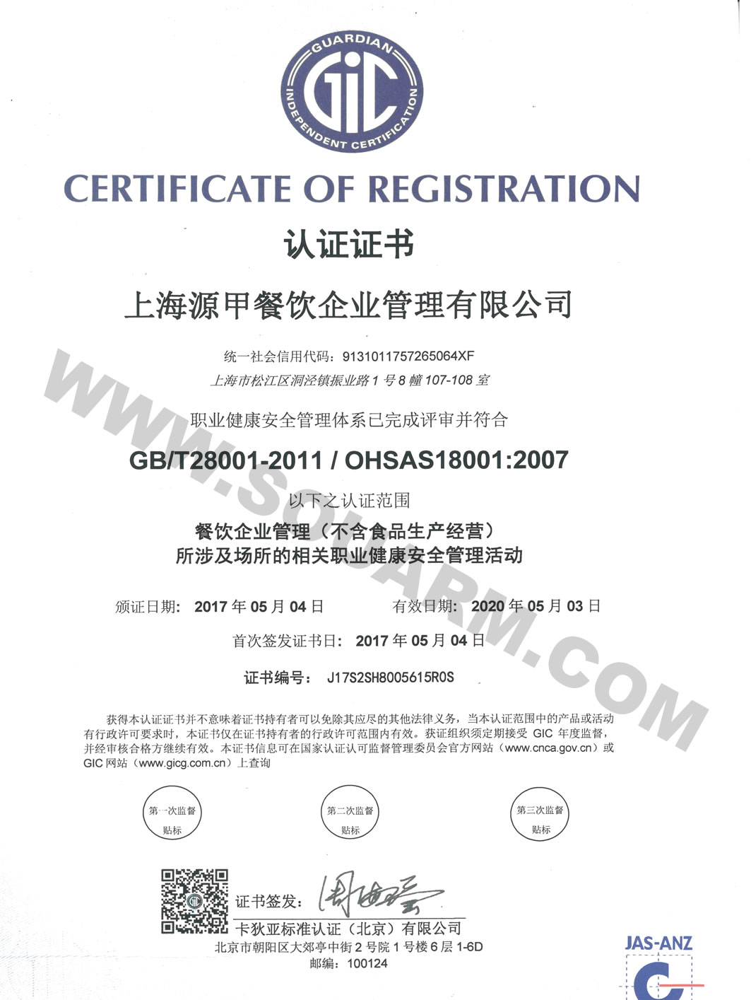 OHSAS18001職業(yè)健康安全管理體系認(rèn)證證書(shū)